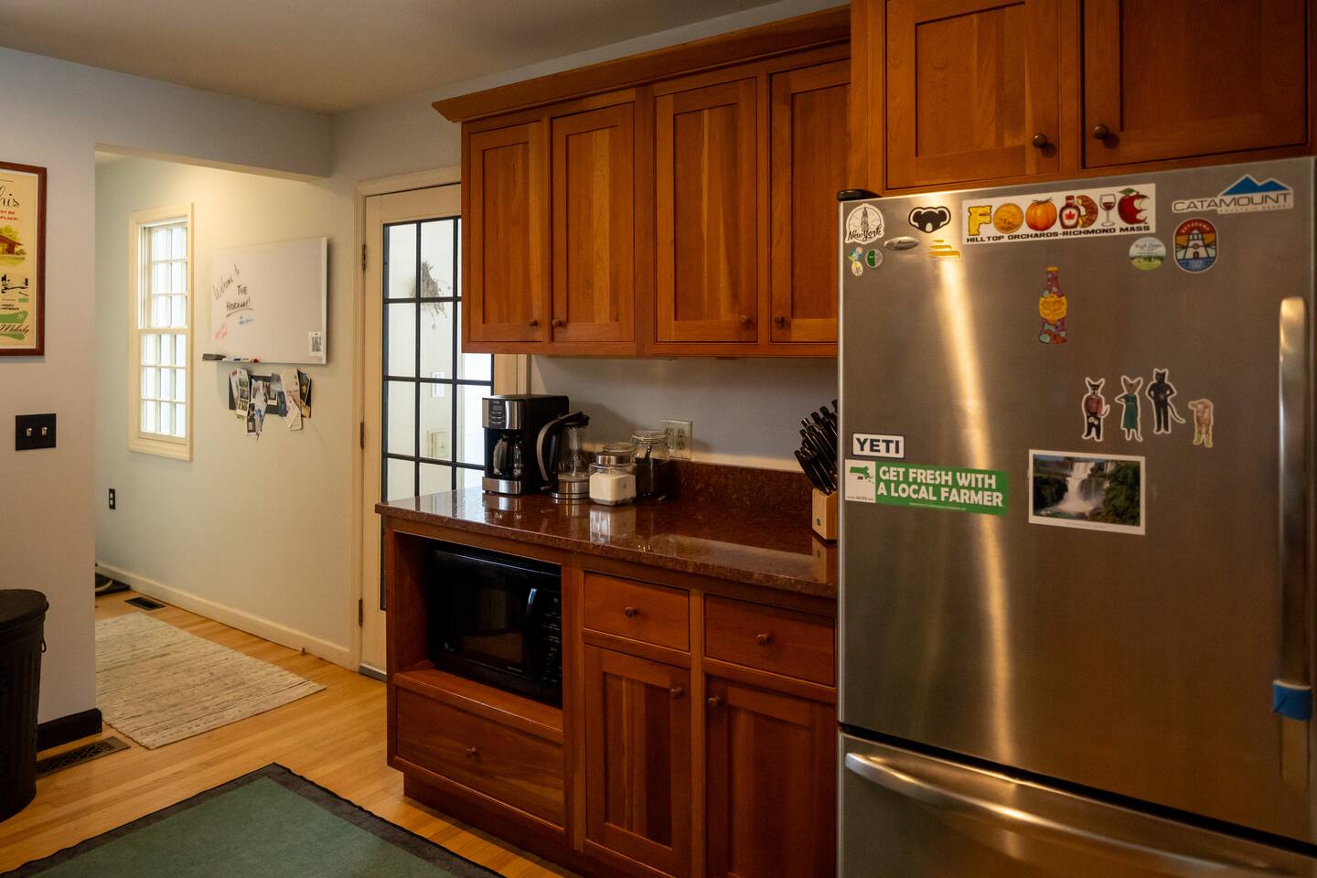 Whether grilling on the back deck, sitting down around the large dining table for a family meal, or hosting game night - there is something for everyone at Hideaway Hollow! 🍎 The kitchen is well-appointed and you should have everything you need to create a delicious meal including olive oil and spices. 💤 Mattresses are all new and offer luxury Brooklinen sheets and a variety of pillow options. 📺 No need to log into your streaming accounts, we provide Netflix, Max and Hulu. 🛜 High speed internet and office space. 🍃 The house has central heating and air conditioning, and offers a delicious cross-breeze on cool summer nights. 🔥 Wood burning stove keeps you cozy in winter, or head outside and roast marshmallows around the fire pit. Wood provided. 🎵 Throw a playlist on the central audio system and enjoy! 🛏️ 1 King Bed 🛏️ 1 Queen Bed 🛏️ 1 Queen Bed 🛏️ 1 Twin XL 🛀🏻 Shower, double vanity, and tub 🛀🏻 Shower, sizable single vanity 👔 Washer and Dryer are located in the basement and available for guest use. 🐕 Dogs welcome! Please ensure they are included in your reservation